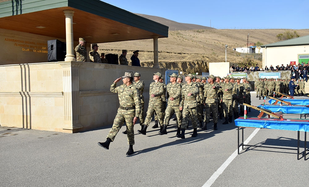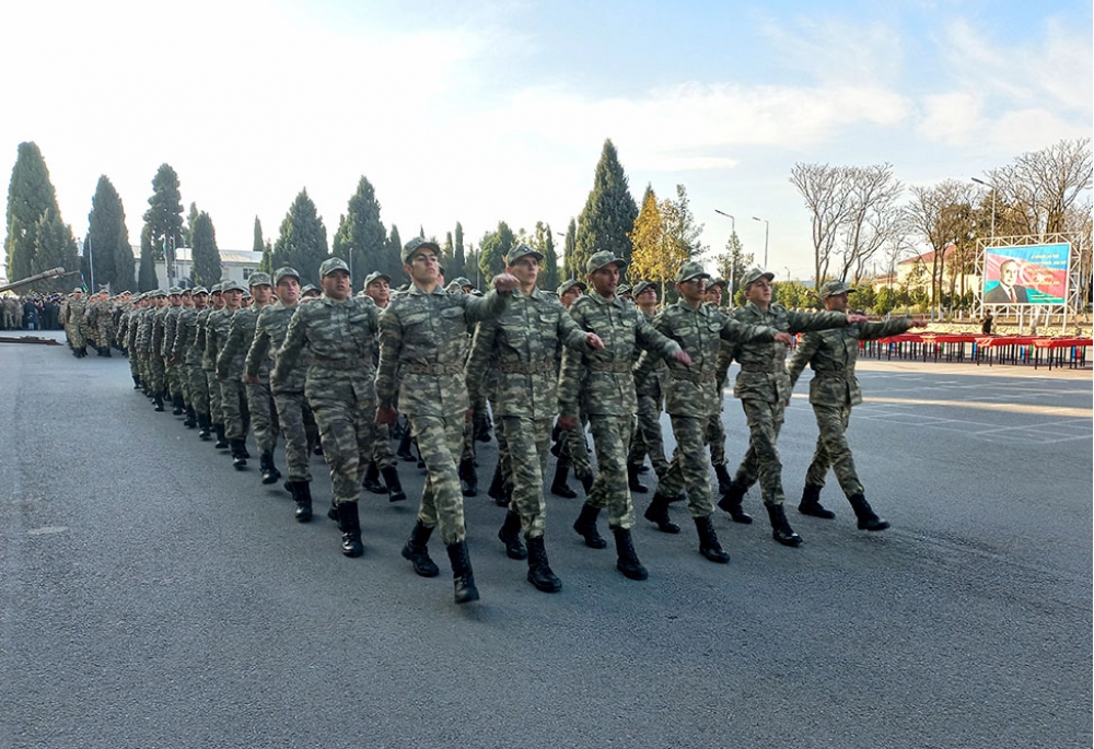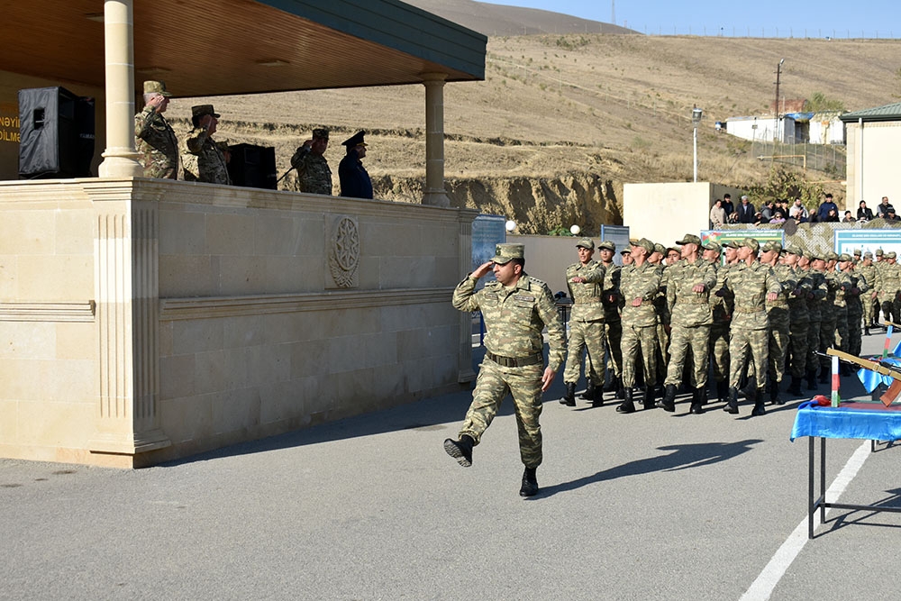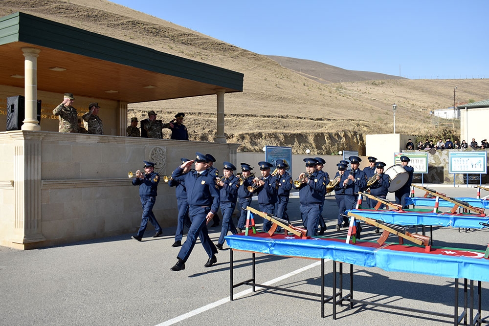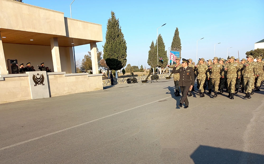 Yekunda şəxsi heyət təntənəli şəkildə hərbi marşın sədaları altında tribuna önündən keçiblər.