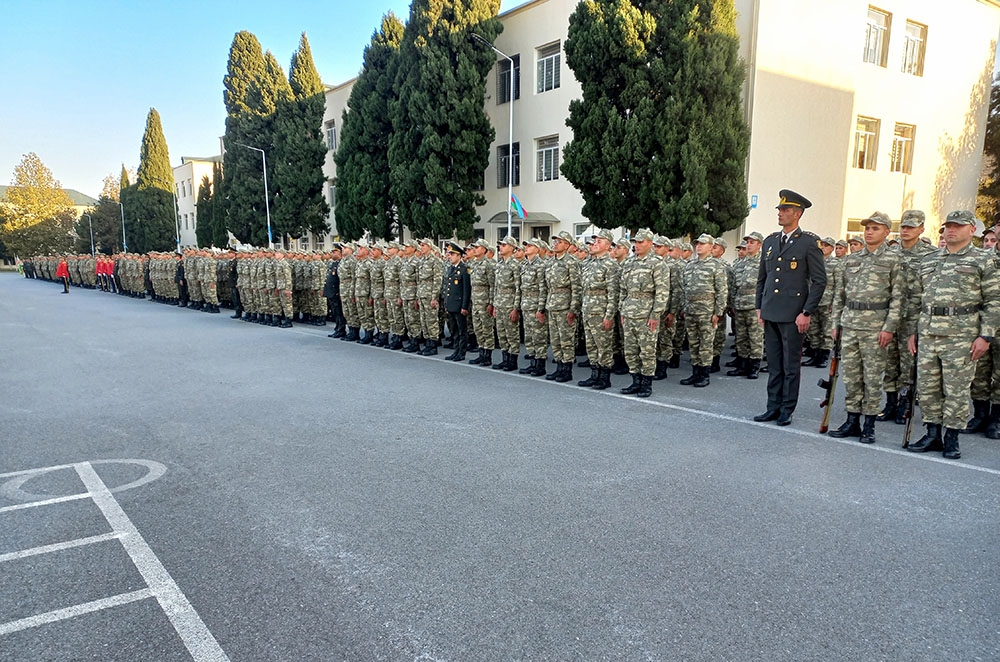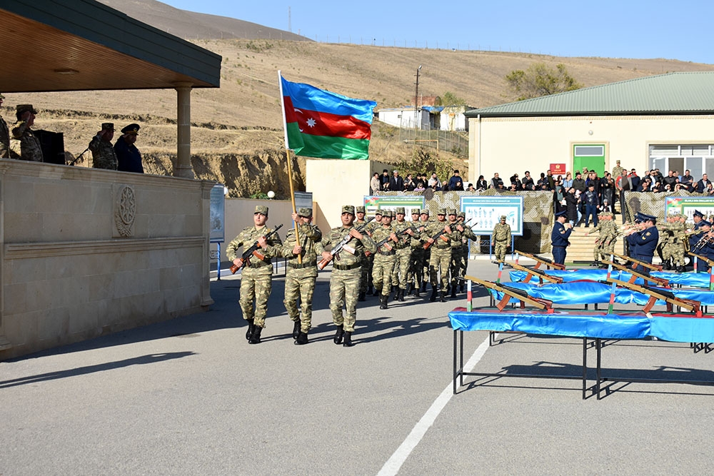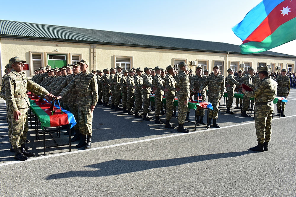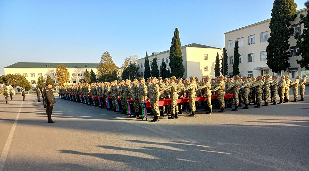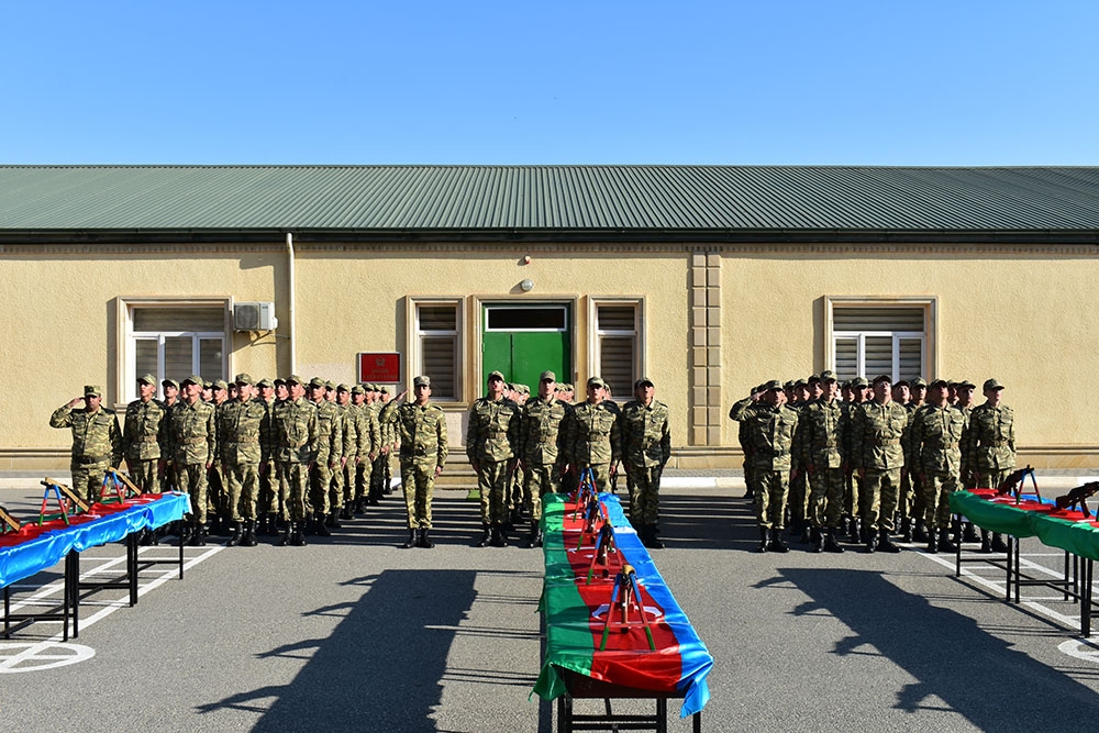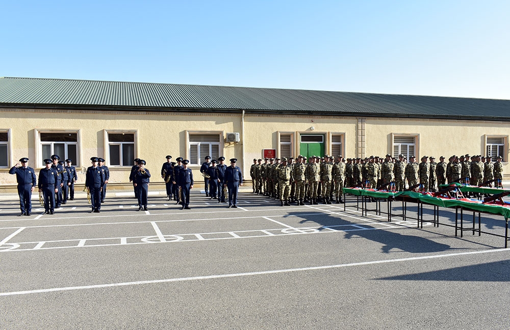 Öncə xalqımızın Ümummilli Lideri Heydər Əliyevin və ölkəmizin ərazi bütövlüyü uğrunda həlak olan şəhidlərimizin xatirəsi bir dəqiqəlik sükutla yad edilib, Dövlət Himni səsləndirilib. Sonda gənc əsgərlər təntənəli surətdə Hərbi andı qəbul edərək Vətənə sadiq olacaqlarına söz veriblər.