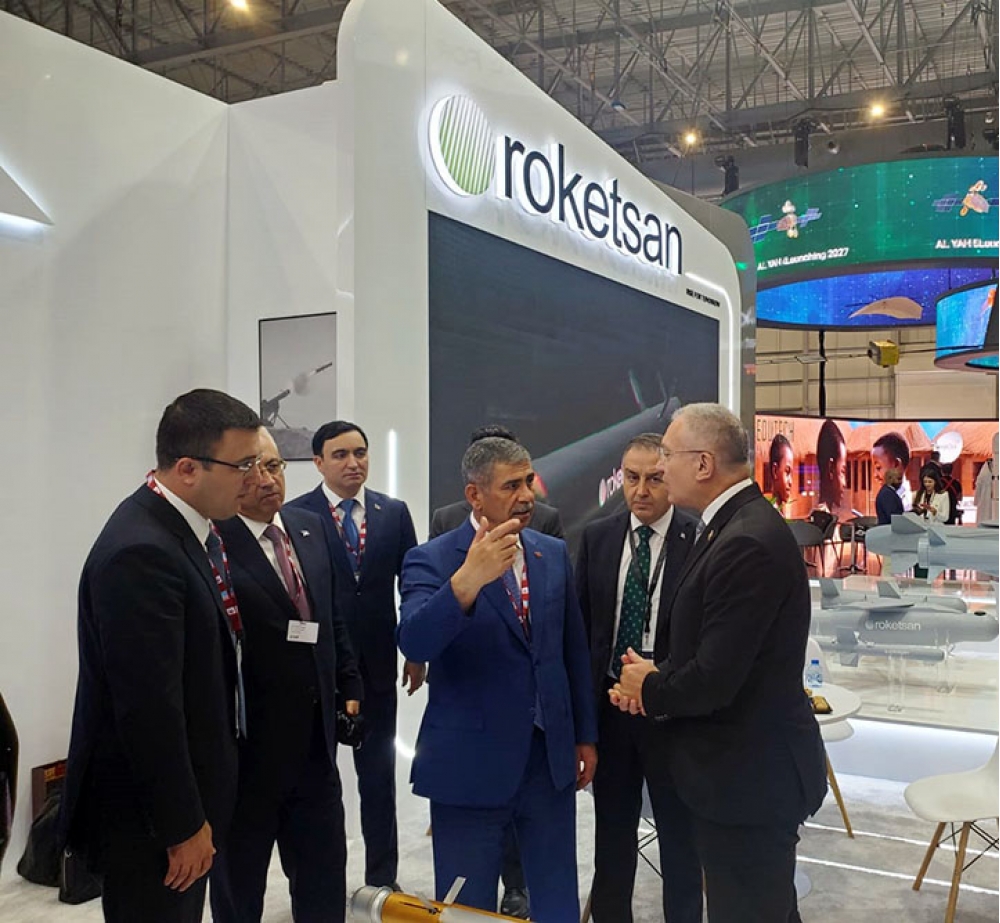 Nazirliyin rəhbər heyəti burada Türkiyə Müdafiə Sənayesinin "ROKETSAN" şirkətinin stendində nümayiş etdirilən silah, texnika və hərbi təyinatlı vasitələrlə tanış olub.