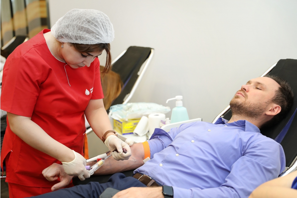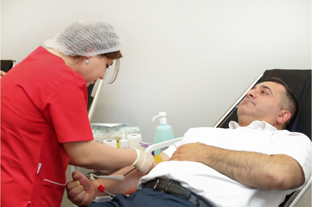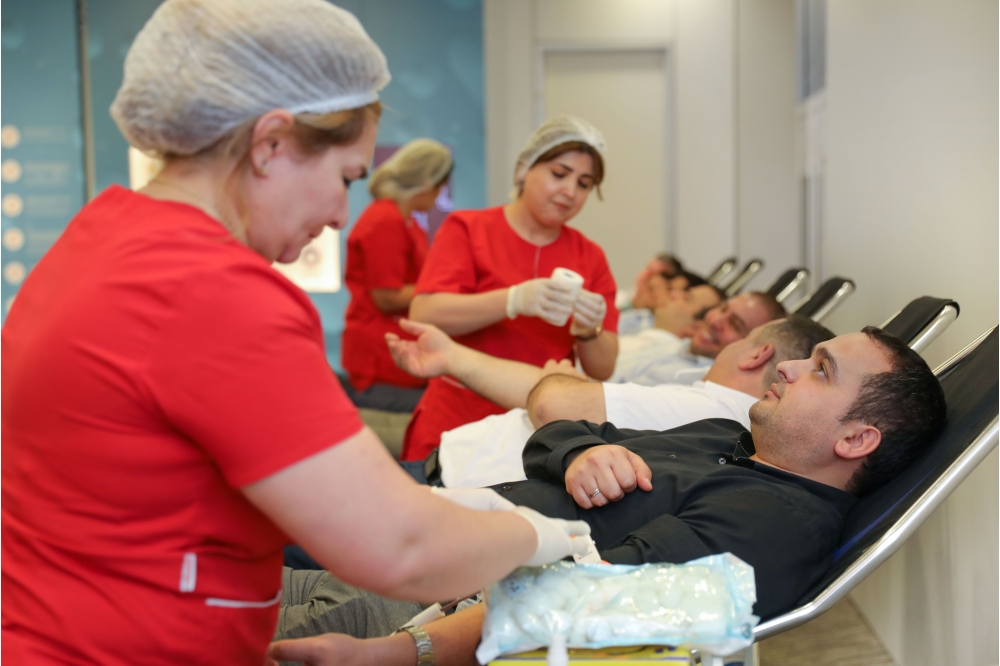 “İki sahil” xəbər verir ki, talassemiya və hemofiliyadan əziyyət çəkən uşaqlara köməklik göstərmək məqsədilə könüllü olaraq “Qan ver, həyat xilas et!” devizi altında keçirilən xeyirxah aksiyada hər il olduğu kimi bu il də SOCAR əməkdaşları fəallıq göstəriblər. Elmi-Tədqiqat Hematologiya və Transfuziologiya institutunun tibb personalının iştirakı ilə həyata keçirilən aksiyada “SOCAR Tower” də çalışan əməkdaşlar qan veriblər.