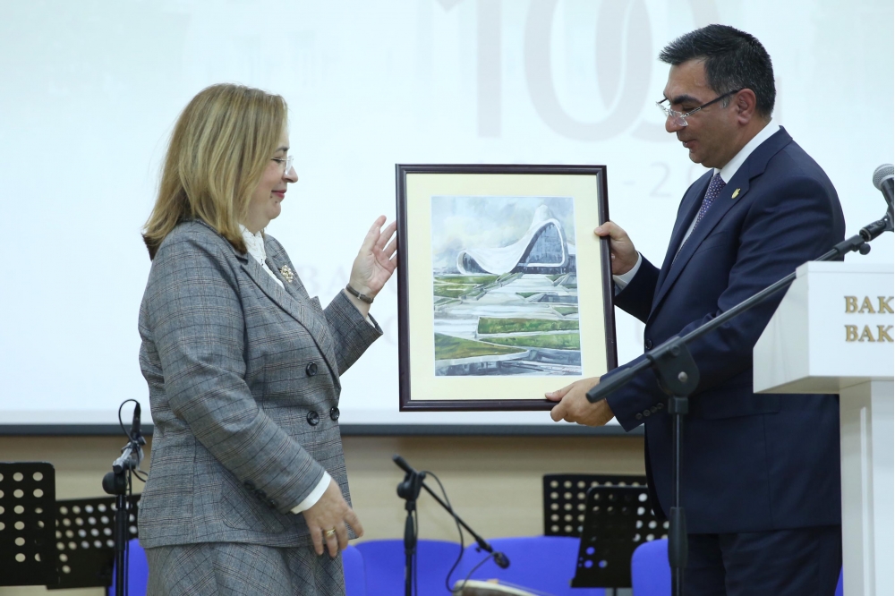 Yubiley tədbirində çıxış edən ADMİU-nun rektoru professor Ceyran Mahmudova qonaqpərvərliyə görə təşəkkür edərək Bakı Ali Neft Məktəbini yaranmasının 12 illiyi münasibətilə təbrik edib. O bildirib ki, BANM gənc olmasına baxmayaraq qısa müddətdə böyük uğur əldə edib. Mədəniyyət və İncəsənət Universitetinin 100 illik yubileyinin keçirilməsi ilə bağlı Azərbaycan Prezidenti İlham Əliyevin Sərəncamını xatırladan Ceyran Mahmudova 100 illik tarixin fəxr və qürurla dolu olduğunu, bu illər ərzində Azərbaycan mədəniyyətini yüksək səviyyədə təmsil edən saysız məzunlar yetişdiyini, bu gün Universitetdə incəsənətin bütün növlərində tədris həyata keçirildiyini vurğulayıb.