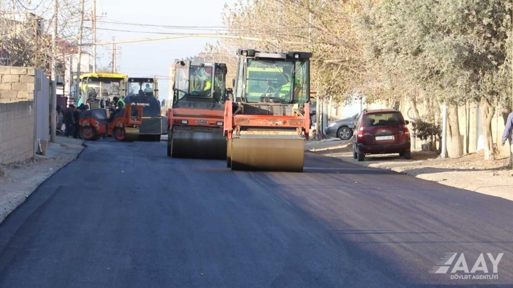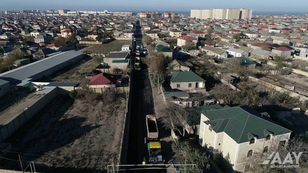 “İnşaat Norma və Qaydaları”nın tələblərinə əsasən daha hazırda yola yeni asfalt-beton örtüyünün döşənməsi işləri icra olunur. Artıq layihə çərçivəsində küçənin 1 km-lik hissəsində asfalt-beton örtüyünün döşənməsi yekunlaşdırılıb.