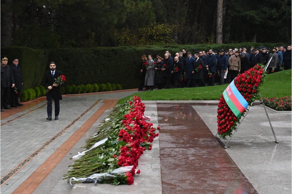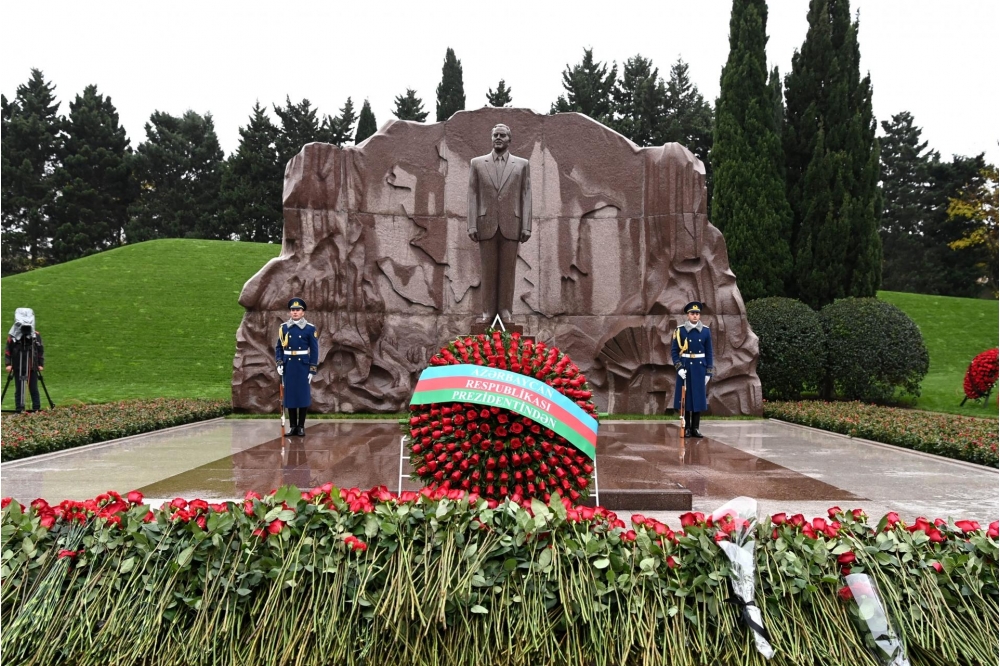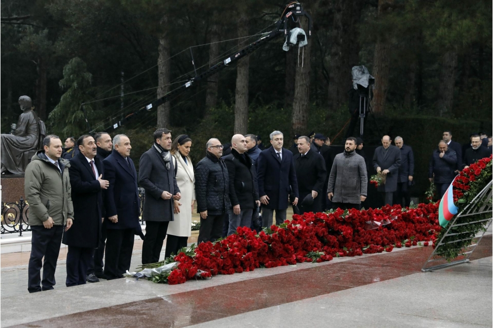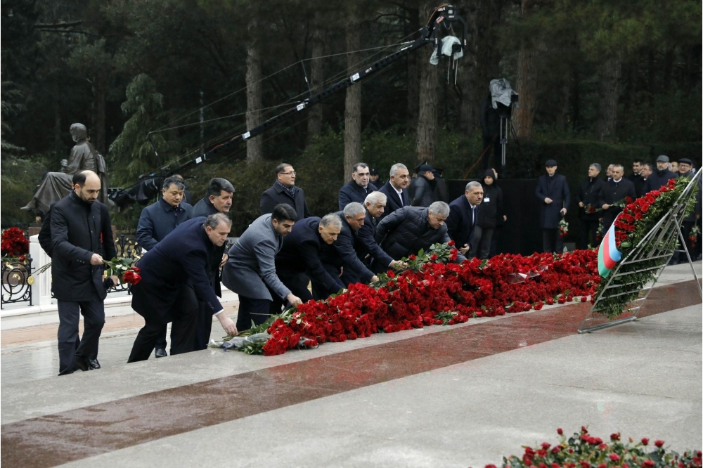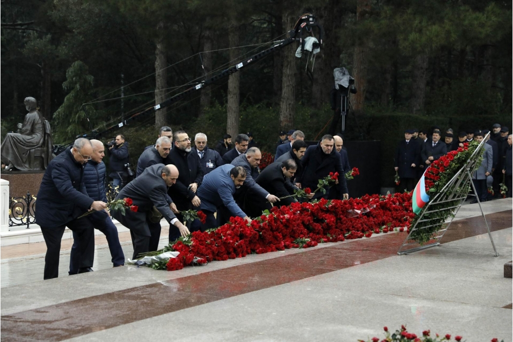 Bildirilib ki, dahi şəxsiyyətin əziz xatirəsini dərin ehtiram və minnətdarlıqla anaraq məzarı önünə əklil və gül dəstələri qoyublar.