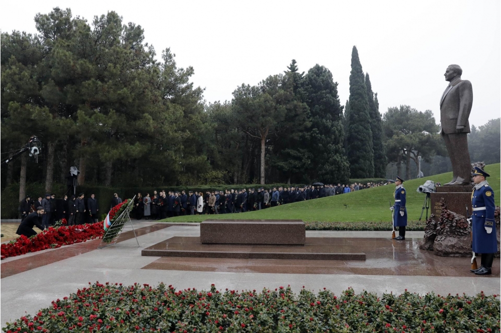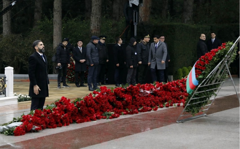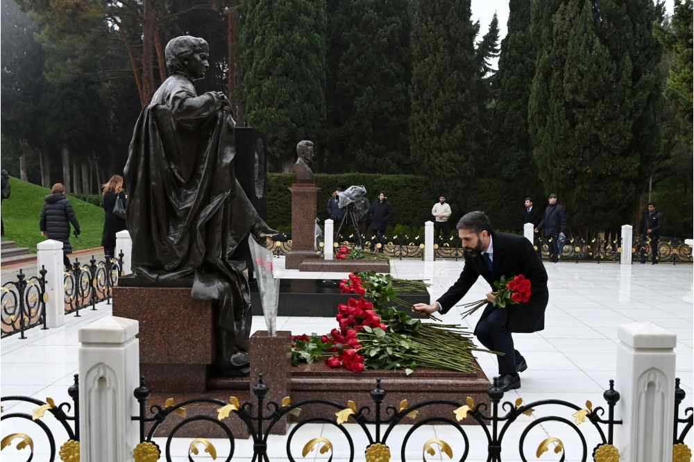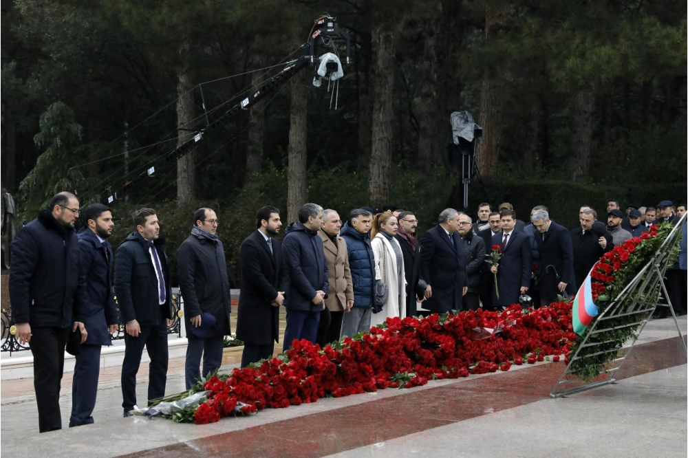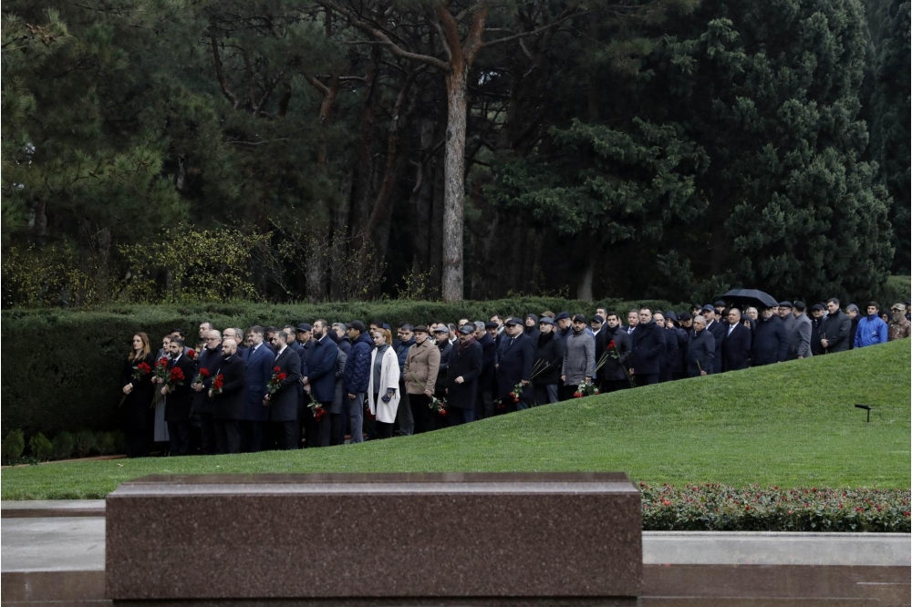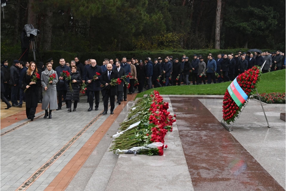 Bildirilib ki, dahi şəxsiyyətin əziz xatirəsini dərin ehtiram və minnətdarlıqla anaraq məzarı önünə əklil və gül dəstələri qoyublar.