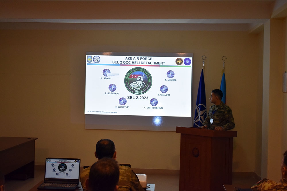 2023-cü ilin təsdiq olunmuş fəaliyyətlər planına əsasən Hərbi Hava Qüvvələrinin (HHQ) "N" hərbi hissəsində NATO-nun Əməliyyat İmkanları Konsepsiyası (ƏİK) proqramı çərçivəsində Azərbaycan HHQ-nin Mi-17-1V helikopter cütlüyünün "2- ci səviyyəli özünüqiymətləndirmə (SEL-2) təlimi" keçirilib.
