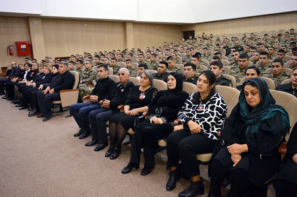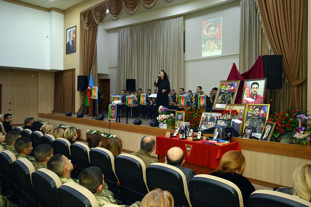 Sonra Həzi Aslanov adına Ordu İdeoloji və Mədəniyyət Mərkəzinin solistlərinin və təhsil müəssisələrinin kursantları tərəfindən şəhidlərimizə həsr olunan şeirlər, vətənpərvərliyi və qəhrəmanlığı tərənnüm edən musiqilər səsləndirilib.