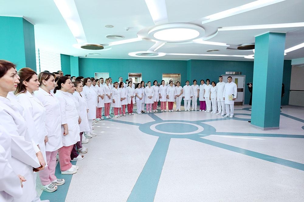 Əvvəlcə xalqımızın Ümummilli Lideri Heydər Əliyevin hospitalın ərazisində ucaldılan abidəsi önünə gül dəstələri qoyulub, xatirəsinə dərin hörmət və ehtiram nümayiş etdirilib.