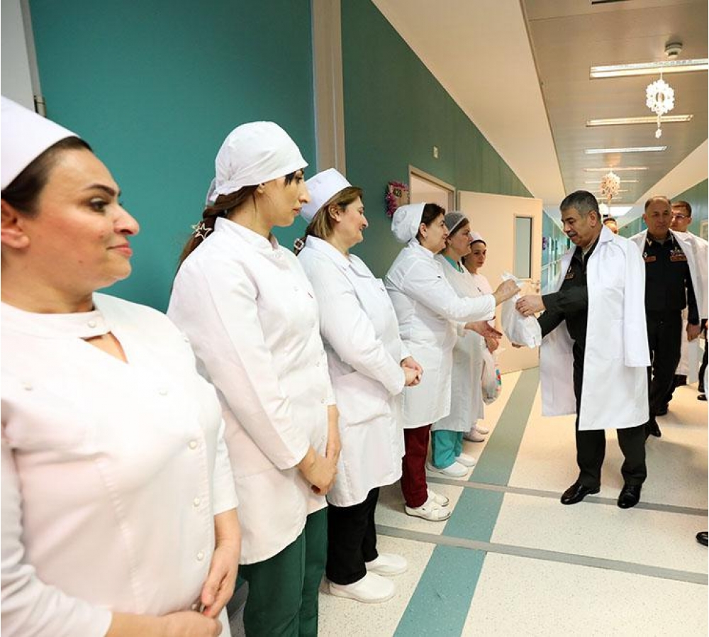 Baş Klinik Hospitalda müalicə olunan hərbi qulluqçularla və tibb personalı ilə görüşən general-polkovnik Zakir Həsənov onlara Azərbaycan Prezidenti, Silahlı Qüvvələrin Ali Baş Komandanı İlham Əliyevin təbriklərini çatdırıb.