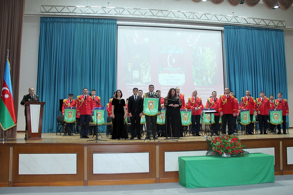 Əvvəlcə xalqımızın Ümummilli Lideri Heydər Əliyevin və ölkəmizin ərazi bütövlüyü uğrunda şəhid olanların xatirəsi bir dəqiqəlik sükutla yad edilib, hərbi orkestrin müşayiəti ilə Azərbaycan Respublikasının Dövlət Himni ifa olunub.