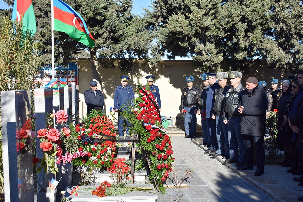 Təlim-məşq zamanı qəzaya uğrayan Hərbi Hava Qüvvələrinin MiQ-29 təyyarəsinin hərbi pilotu şəhid polkovnik-leytenant Rəşad Atakişiyevin doğum günü münasibətilə anım tədbiri keçirilib.