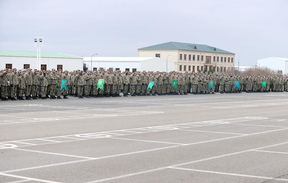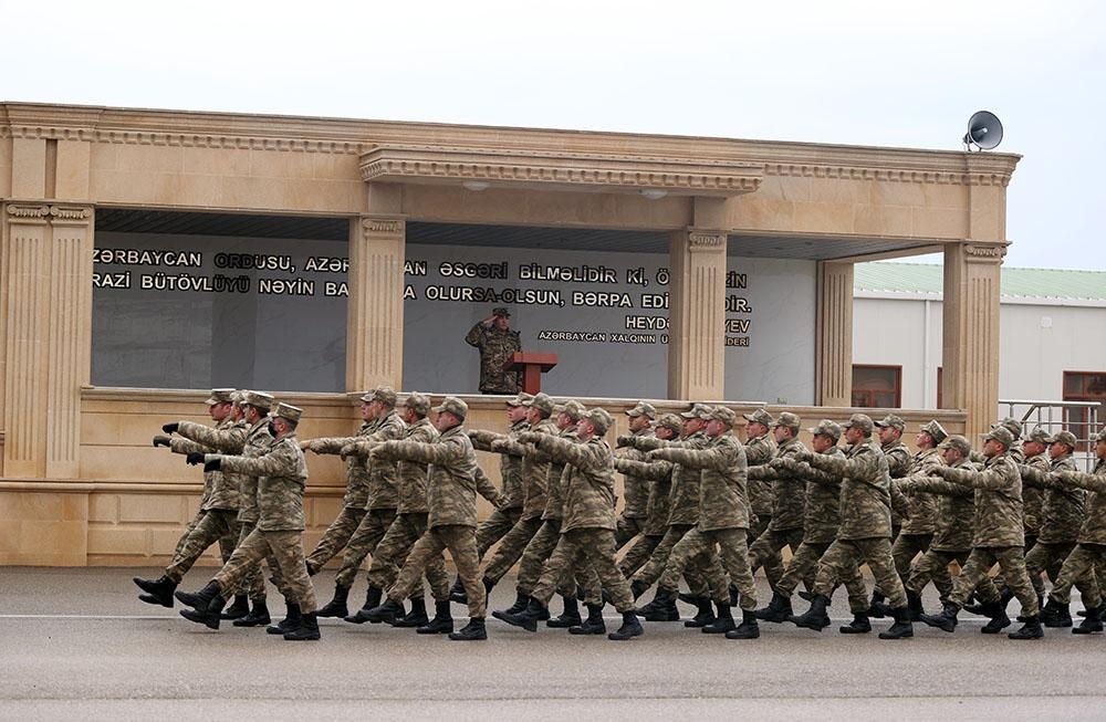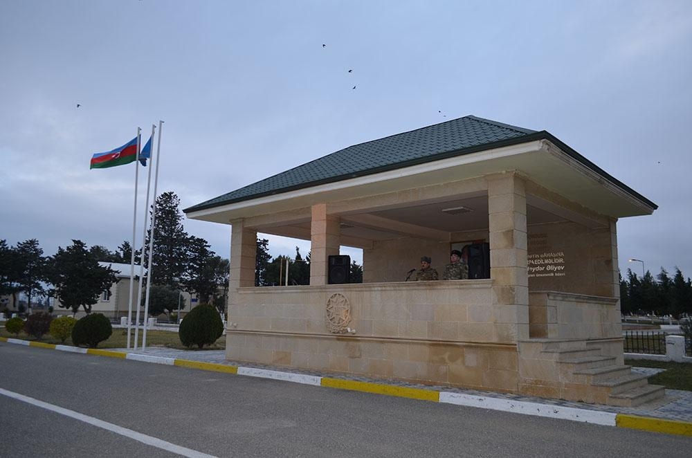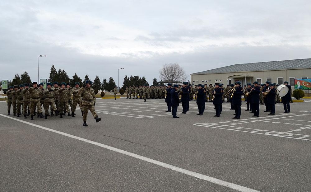 Keçirilən tədbirlərdə döyüş bayrağı sıra meydanına gətirilib, hərbi orkestrin müşayiəti ilə Dövlət Himni səsləndirilib.