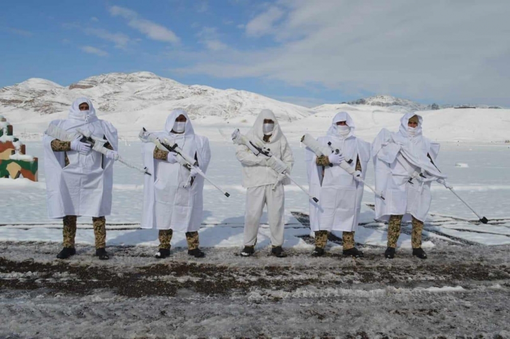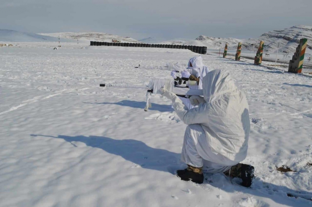 Çətin hava və relyef şəraitində snayper cütlüklərinin maskalanma tədbirlərinə əməl etdikləri məşğələyə zirehli texnikalar da cəlb edilib.