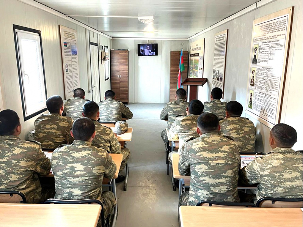 Azərbaycan Ordusunun şəxsi heyətinin döyüş ruhunun, mənəvi-psixoloji hazırlığının və vətənpərvərlik hissinin daha da yüksəldilməsi istiqamətində görülən işlər plana uyğun davam etdirilir.