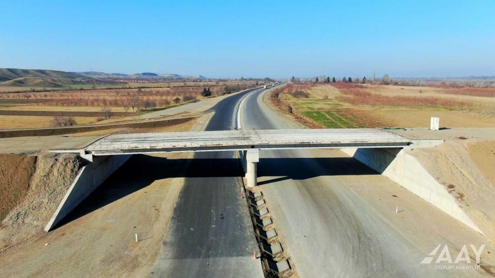 “Azərbaycan Respublikası regionlarının 2019-2023-cü illərdə sosial-iqtisadi inkişafı Dövlət Proqramı”na əsasən yenidən qurulan 1b texniki dərəcəli yolun bu hissəsində 67 alt keçid, 19 qovşaq və 17 (36 ədəd) körpünün tikintisi də başa çatdırılıb.
