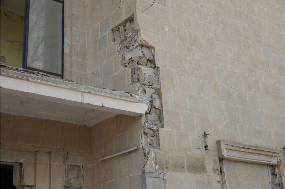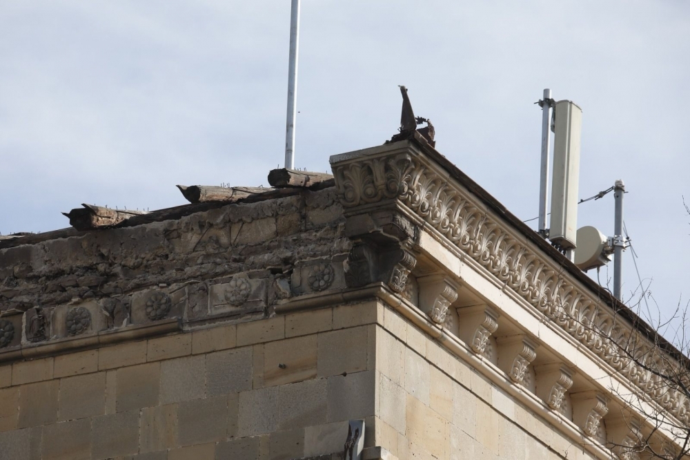 Hazırda mülkiyyətçinin Komitəyə müraciəti əsasında müvafiq qurumlarla birlikdə vətəndaşların təhlükəsizliyinin təmin edilməsi və binanın ornamentlərini saxlamaq şərtilə bərpa-bərkitmə işlərinin aparılması ilə bağlı aidiyyəti göstərişlər verilib”.