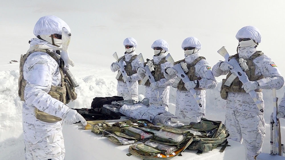 Təlimdə əvvəlcə qarlı-çovğunlu havalar və çətin keçiləbilən ərazilərdə şəxsi heyətin fəaliyyəti üçün lazım olan təchizat, müxtəlif dağ ləvazimatları və ərzaqla təminatı, həmçinin bölmələrin qış şərtlərində ərazidə məskunlaşma qabiliyyəti yoxlanılıb.