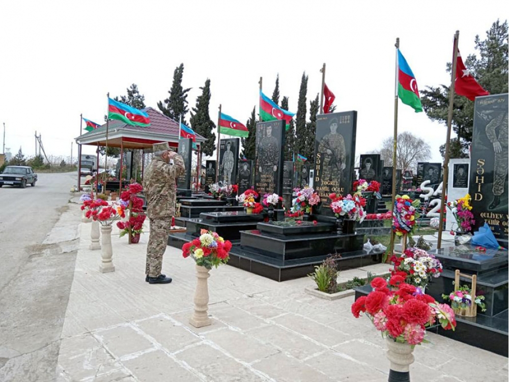 Əvvəlcə şəhidlərimizin məzarları ziyarət edilib, önünə tər çiçəklər düzülüb, ruhlarına dualar oxunub.