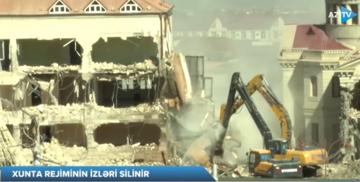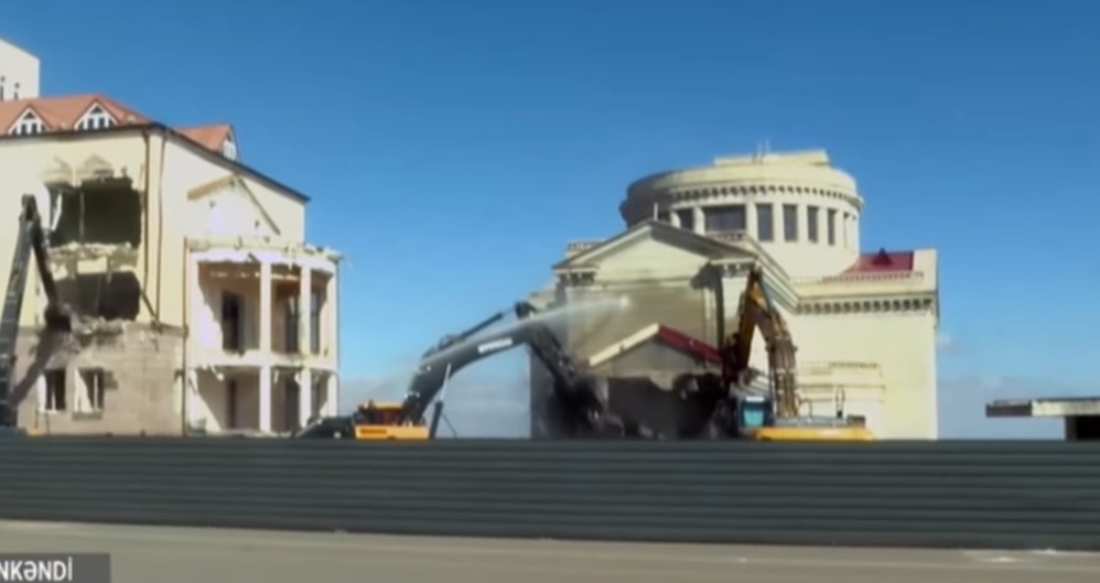 Ermənilərin Xankəndini işğal etdikdən sonra inşa etdiyi qondarma respublikalarının "parlament binası" sökülür.