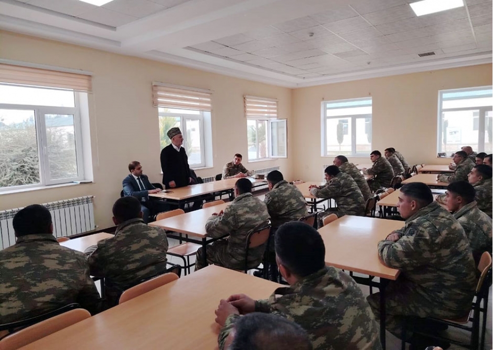 Azərbaycan Respublikası Müdafiə Nazirliyi ilə Dini Qurumlarla İş üzrə Dövlət Komitəsi arasında imzalanan 2024-cü il üçün birgə tədbirlər planına əsasən, komitənin nümayəndələri hərbi qulluqçularla görüşüb, onlarla maarifləndirici söhbətlər aparıblar.