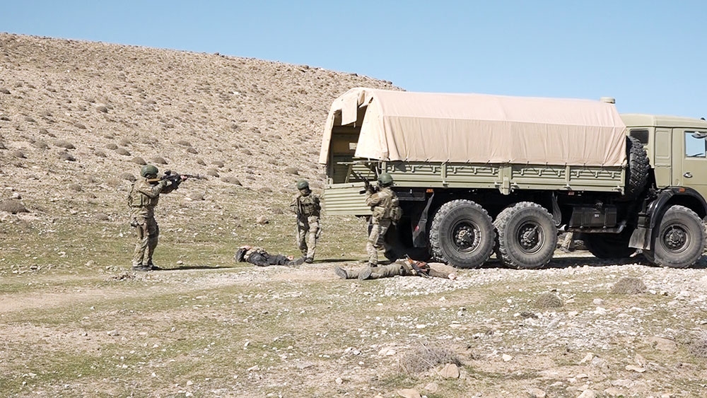 Təlimin gedişində xüsusi təyinatlı bölmələrin vasitəsi ilə vizual müşahidə aparılıb, şərti düşmənin döyüş mövqeləri və yaxın dərinlikdəki vacib obyektləri qiymətləndirilib. Verilən döyüş tapşırığına əsasən xüsusi təyinatlılar tərəfindən şərti düşmənin müdafiəsinin ön xəttində yerləşən döyüş mövqelərinə və komanda-idarəetmə məntəqəsinə basqınlar keçirilib.