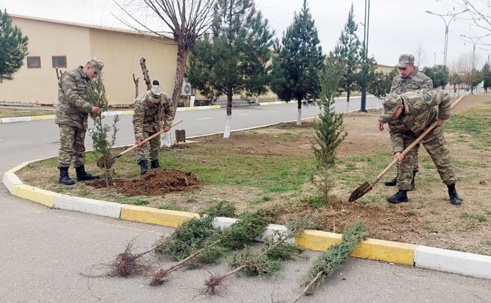 Azərbaycan Ordusunda keçirilən tədbirlər planına əsasən genişmiqyaslı yaşıllaşdırma işlərinin aparılması və ağacəkmə aksiyaları davam etdiriləcəkdir.