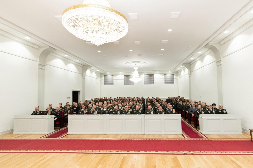 Əvvəlcə Ulu Öndər Heydər Əliyevin və ölkəmizin suverenliyi, ərazi bütövlüyü uğrunda həlak olmuş hərbi qulluqçuların, eləcə də bütün şəhidlərin əziz xatirəsi bir dəqiqəlik sükutla yad olunub.