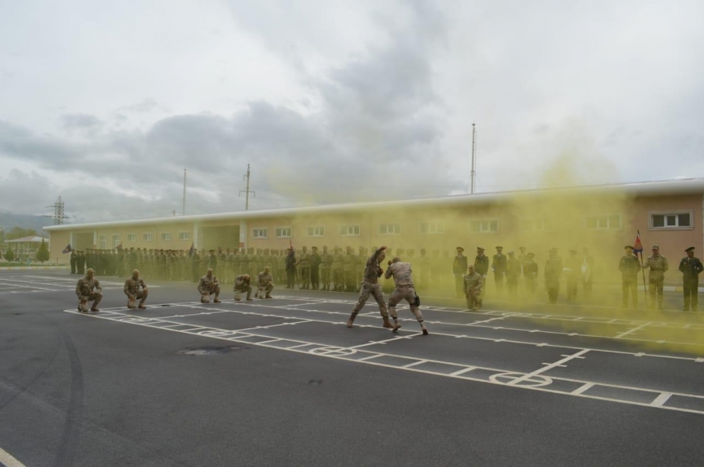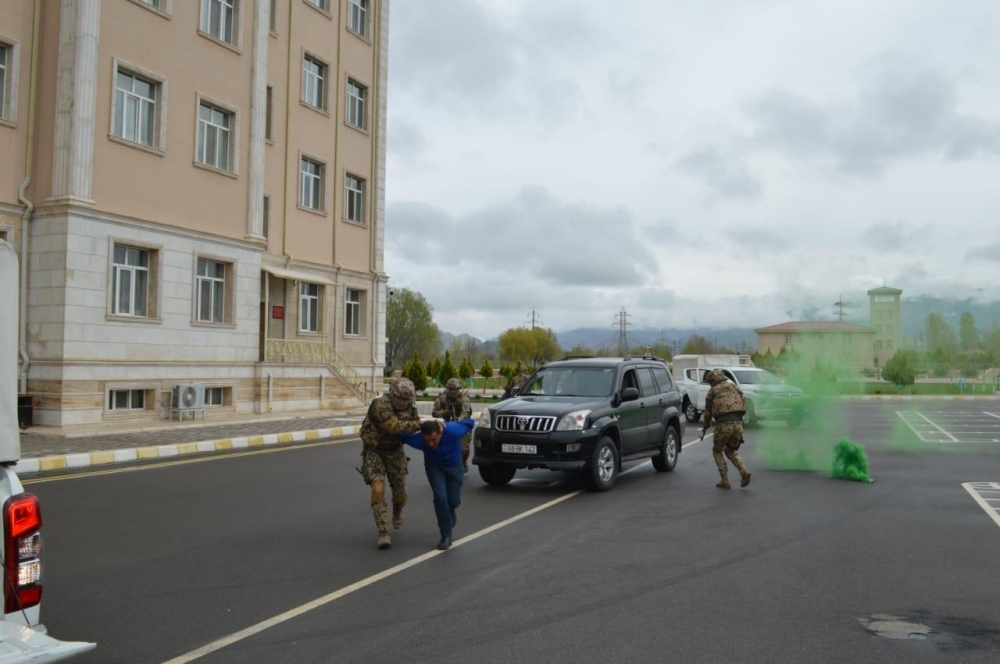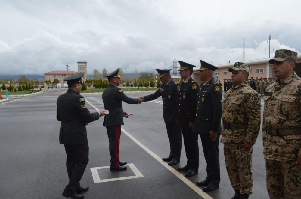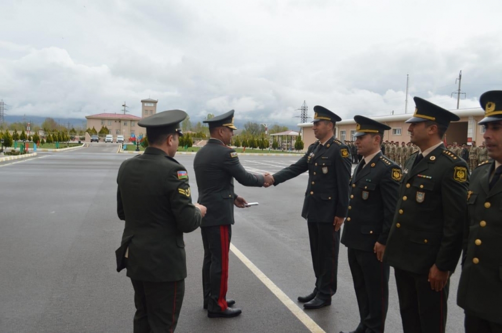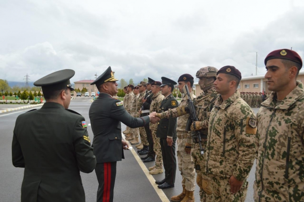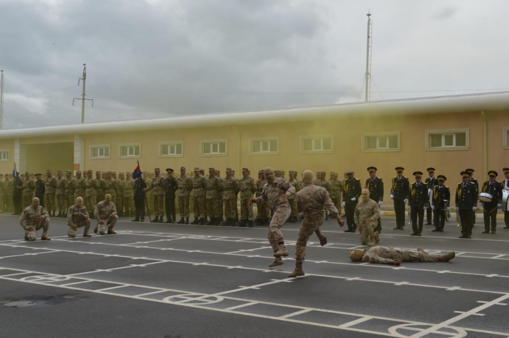 Sonra xidmətdə fərqlənən hərbi qulluqçuları mükafatlandırıb, şəxsi heyət təntənəli marşın sədaları altında tribunanın önündən keçib, xüsusi təyinatlı dəstənin nümunəvi çıxışları olub.
