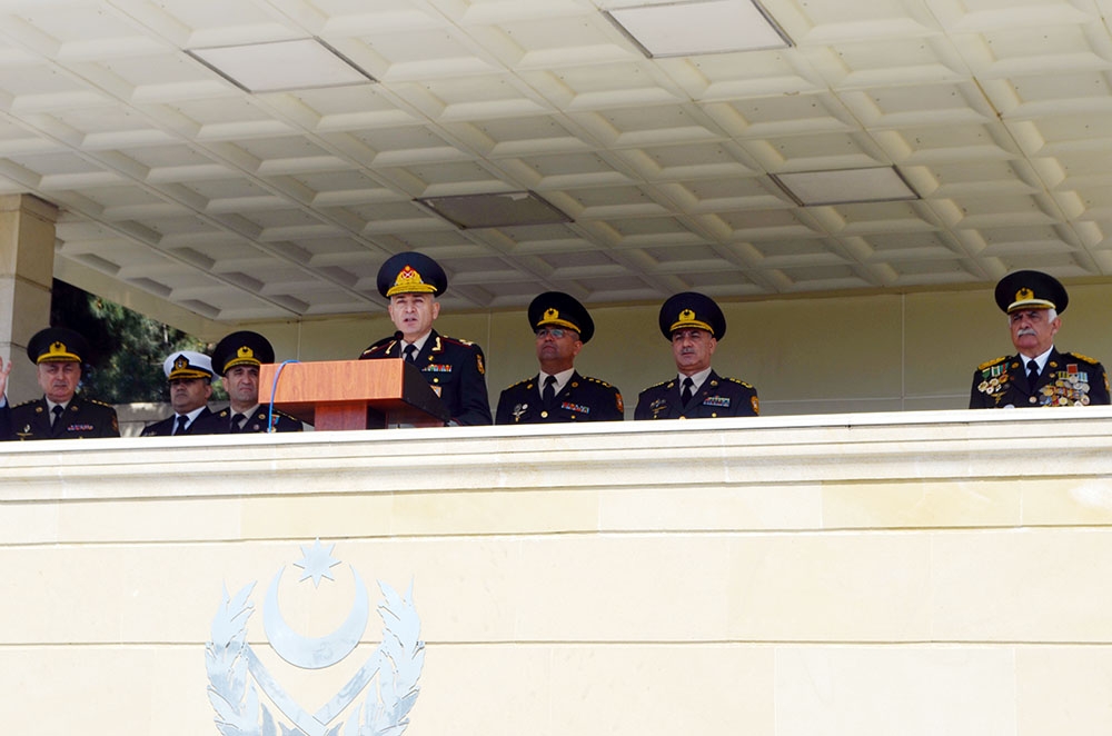 Sonra hərbi liseyin Döyüş bayrağı təntənəli surətdə meydana gətirilib. Mərasimdə çıxış edənlər ötən müddət ərzində respublikamızda milli peşəkar hərbçi kadrların hazırlanmasında hərbi liseyin göstərdiyi xidmətlərdən, hərbi peşənin nüfuzunun yüksəlməsində və taleyini hərb sənətinə həsr edən gənclərin sayının artmasında əhəmiyyətli rol oynamasından danışıblar.