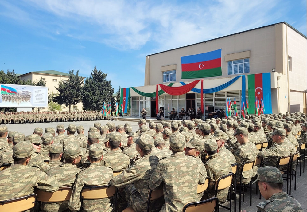 Sonra hərbi orkestrin müşayiəti ilə kursantlar lisey marşını ifa edib və təntənəli marşla tribunanın önündən keçib.