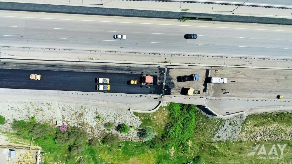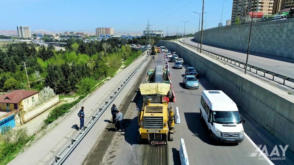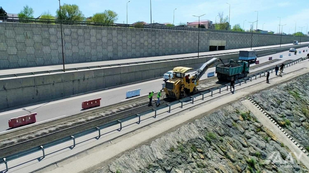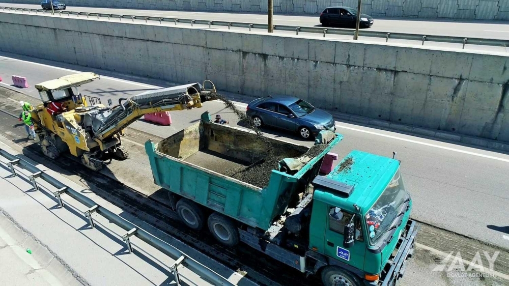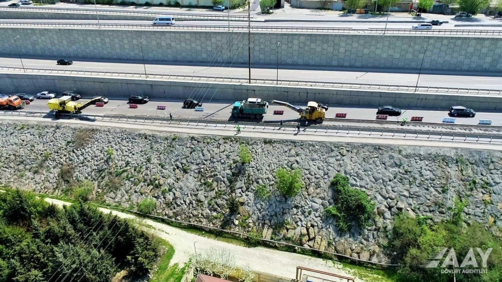 Təmir çərçivəsində köhnə və yararsız asfalt-beton örtüyü frezlənərək kənara daşınıb, ardınca isə yeni asfalt-beton örtüyünün döşənməsi işləri aparılıb.