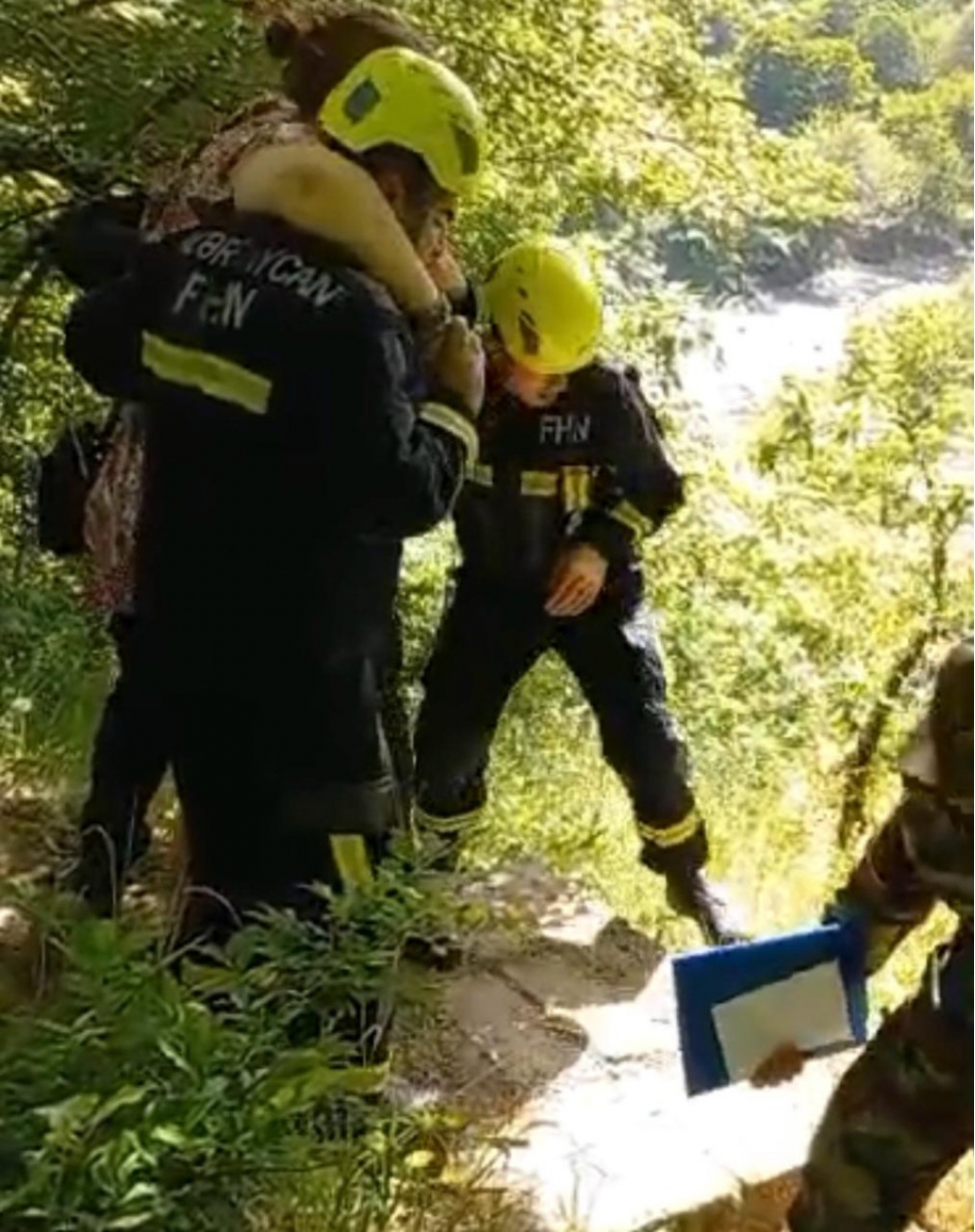 Xilasedicilər 1 km hündürlüyü olan ərazidən vətəndaşı xilas edərək təcili tibbi yardım briqadasına təhvil veriblər.
