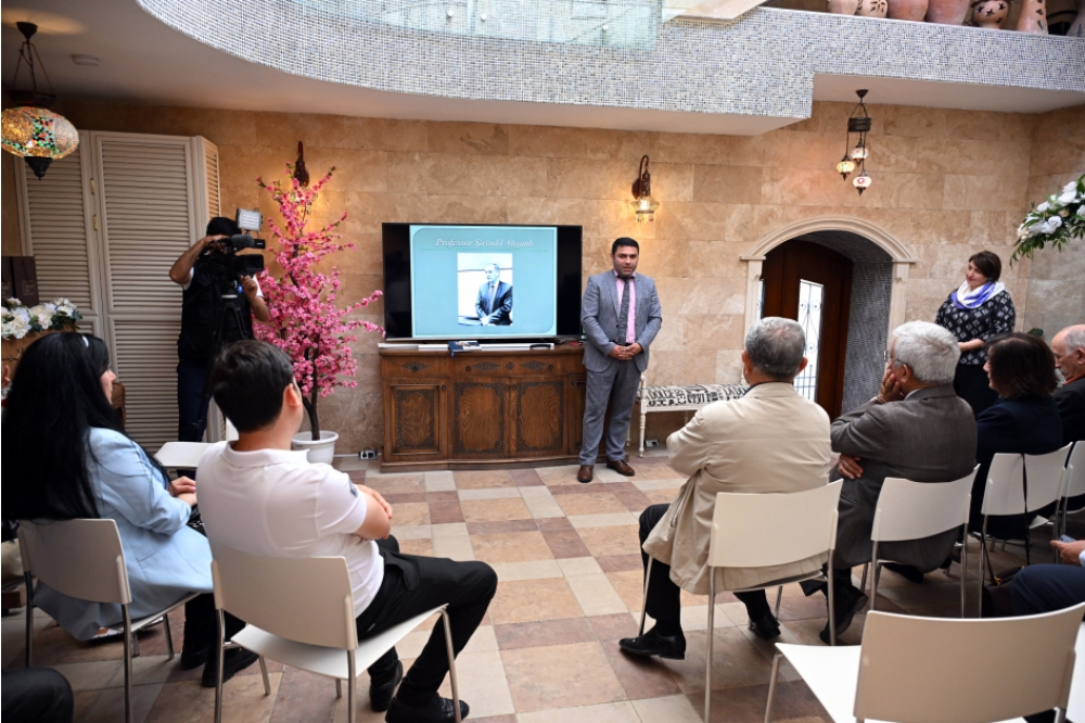 Fərid Hüseyn özünün hazırladığı və Şirindil Alışanlının “Ön söz” yazdığı Mir Cəlalın böyük şairimiz Nizamiyə həsr etdiyi elmi əsərlərinin toplusu olan “Nizami Gəncəvi dünyası” kitabının ilk nüsxəsini iştirakçılara təqdim edib.