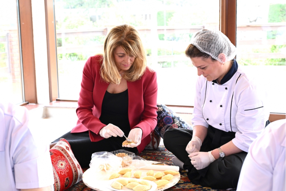 Sonra Bolqarıstanın birinci xanımına milli mətbəximizin təamlarının hazırlanma üsulları nümayiş edilib.