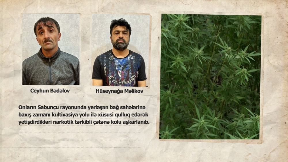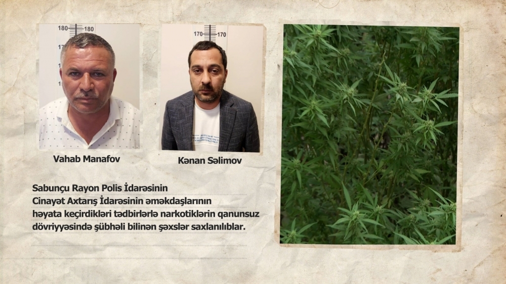 “İki sahil” DİN-ə istinadən xəbər verir ki, Sabunçu Rayon Polis İdarəsinin (RPİ) Cinayət Axtarış Şöbəsinin (CAŞ) əməkdaşlarının həyata keçirdikləri tədbirlərlə narkotiklərin qanunsuz dövriyyəsində şübhəli bilinən 1976-cı il təvəllüdlü paytaxt sakini Vahab Manafov saxlanılıb. Ondan 2 kiloqram narkotik vasitə marixuana aşkar olunub. Əməliyyat tədbilərinin davamı olaraq həmin şəxsin narkotikləri əldə etdiyi Maştağa qəsəbəsi sakini Kamal Rəhmanov da saxlanılaraq istintaqa təqdim edilib. Onun üzərindən isə 1 kiloqram marixuana aşkarlanıb. K.Rəhmanovun daxil olduğu narkoşəbəkənin digər üzvlərinin saxlanılması istiqamətində keçirilən tədbirlərlə onun marixuananı əldə etdiyi şəxslər paytaxt sakinləri Hüseynağa Məlikov və Ceyhun Bədəlovun da saxlanıması təmin edilib. Onların Sabunçu rayonunda yerləşən bağ sahələrinə baxış zamanı kultivasiya yolu ilə xüsusi qulluq edərək yetişdirdikləri narkotik tərkibli 1500 ədəd çətənə kolu aşkarlanıb. Araşdırma zamanı dəstə üzvlərinin çətənə kollarını yetişdirdikdən sonra paytaxt ərazisində satışı ilə məşğul olduqları müəyyən edilib. Aşkarlanan faktlarla bağlı Sabunçu RPİ-ə araşdırmalar davam etdirilir.