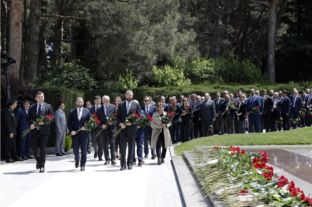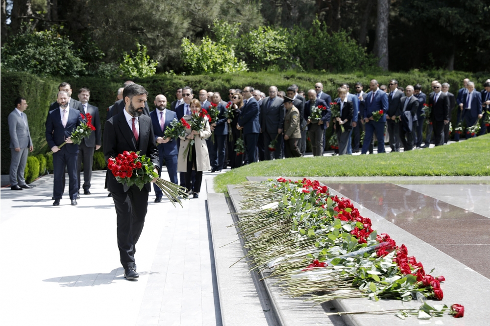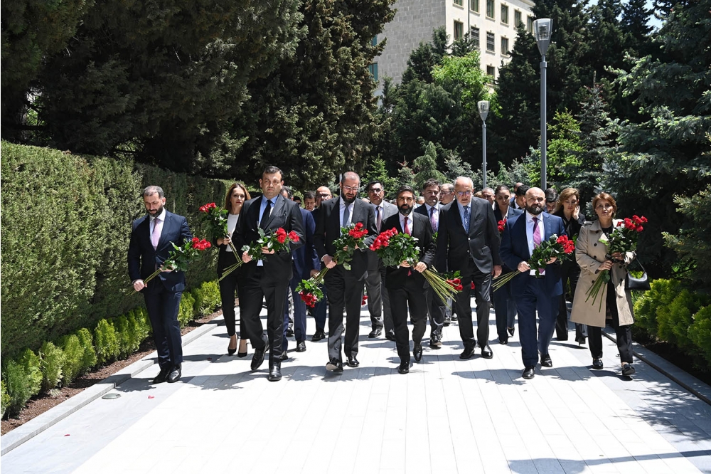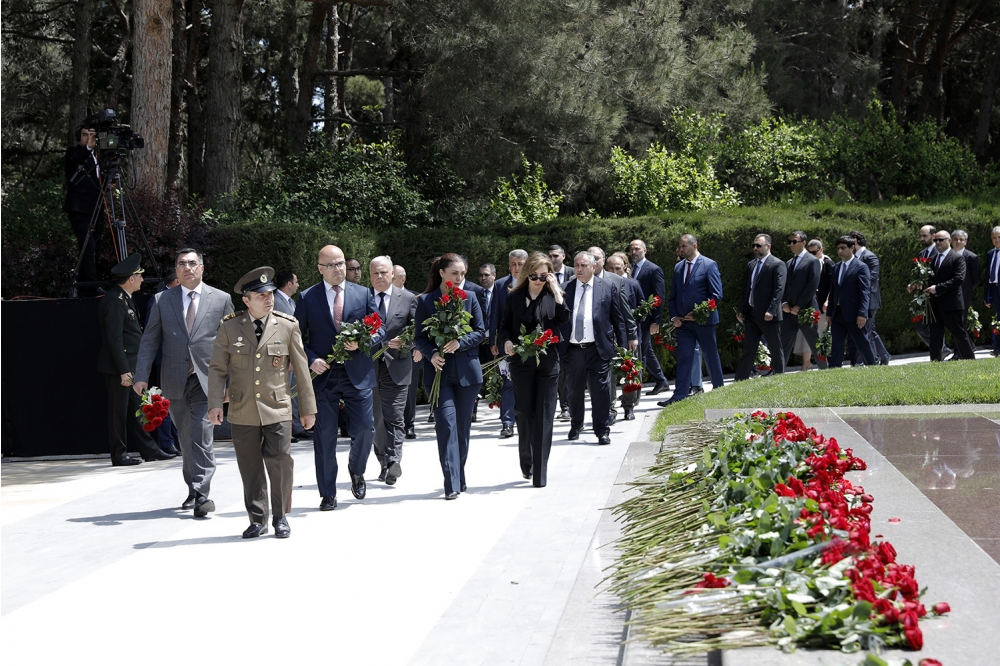 “İki sahil” xəbər verir ki, ilk öncə SOCAR-ın kollektivi Fəxri xiyabanda Ümummilli Lider Heydər Əliyevin məzarını ziyarət edərək Ulu Öndərin əziz xatirəsini dərin hörmət və ehtiramla anıb.
