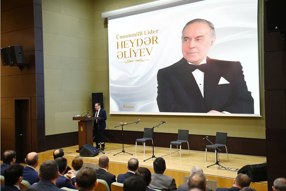 Daha sonra SOCAR-ın Baş ofisinin akt zalında Ulu Öndərin əziz xatirəsinə həsr olunmuş tədbir keçirilib. Tədbirdə əvvəlcə Azərbaycan Respublikasının Dövlət Himni səsləndirilib. Sonra Ulu Öndər Heydər Əliyevin xatirəsinə həsr olunmuş videoçarx nümayiş etdirilib.