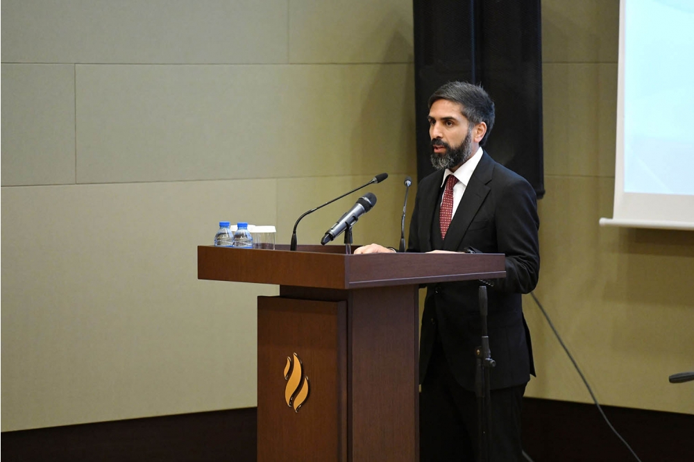 Tədbirdə çıxış edən SOCAR-ın prezidenti Rövşən Nəcəf həyatını dövlət müstəqilliyimizin möhkəmləndirilməsinə, xalqımızın parlaq gələcəyinin təmin olunmasına həsr edən Ulu Öndər Heydər Əliyevin müəyyənləşdirdiyi strateji inkişaf konsepsiyasının ölkəmizin hərtərəfli tərəqqisini təmin etdiyini, neft-qaz sənayemizin dayanıqlı inkişafının əsasını qoyduğunu vurğulayıb.