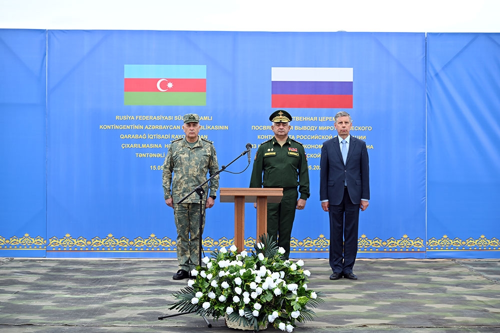 Mayın 15-də Xocalı hava limanında Rusiya Federasiyası sülhməramlı kontingentinin missiyasının başa çatmasına həsr olunmuş təntənəli mərasim keçirilib. Tədbirdə Azərbaycan Respublikası Müdafiə Nazirliyinin, eləcə də Rusiya Federasiyasının Müdafiə Nazirliyinin, sülhməramlı kontingentinin, Azərbaycan Respublikasındakı səfirliyinin rəsmi nümayəndələri, hərbi qulluqçular və media nümayəndələri iştirak ediblər.