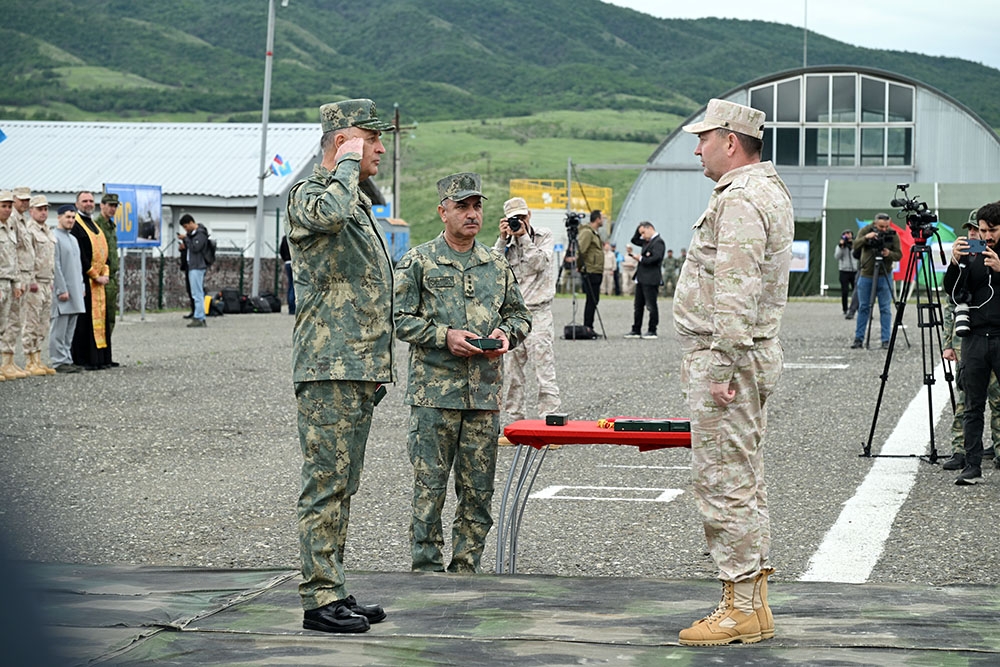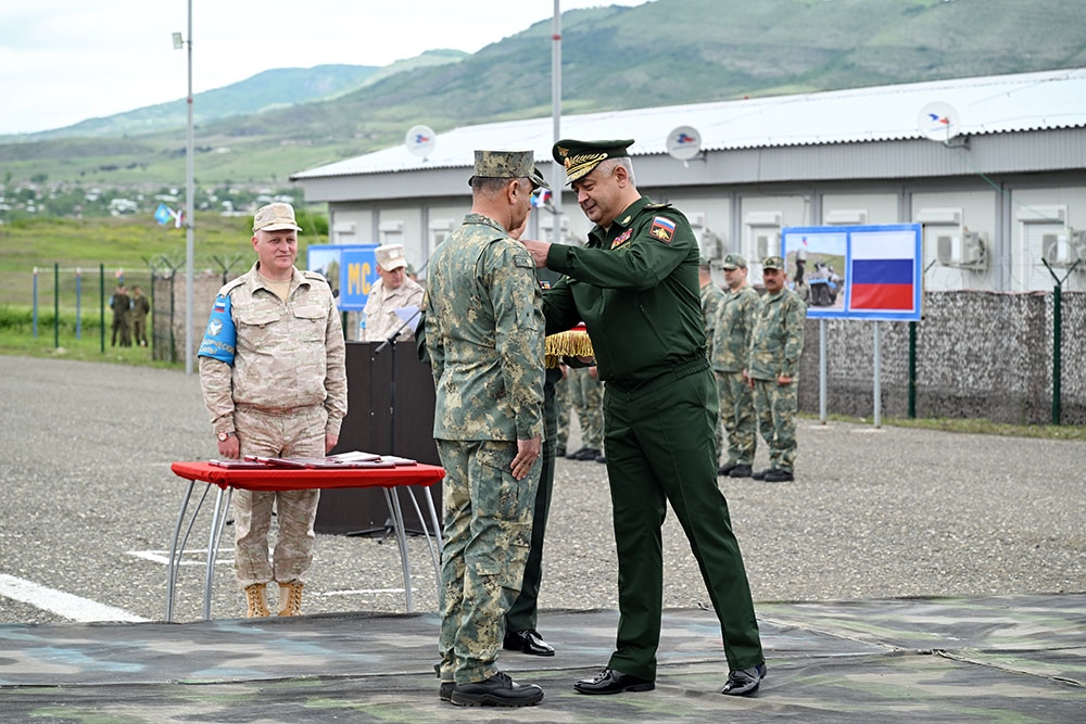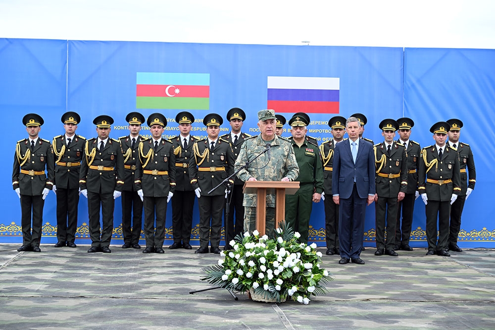 Daha sonra Rusiya Federasiyası Silahlı Qüvvələrinin Quru Qoşunlarının Baş Qərargah rəisi general-polkovnik Aleksandr Lapin çıxış edərək Azərbaycan Respublikasının Qarabağ iqtisadi rayonunda müvəqqəti yerləşdirilmiş Rusiya Federasiyası sülhməramlı kontingentinin fəaliyyətindən danışıb. Rusiya Federasiyasının müdafiə naziri, Baş Qərargah rəisi və öz adından Rusiya sülhməramlı kontingentinin hərbi qulluqçularına hərbi vəzifələrini layiqincə yerinə yetirdiyinə, Azərbaycan Respublikası Silahlı Qüvvələrinin hərbi rəhbərliyinə isə səmərəli birgə əməkdaşlığa və əldə edilmiş anlayışa görə dərin minnətdarlığını bildirib.