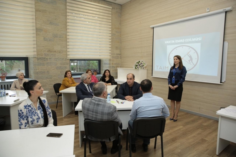 Təhsildə Araşdırma və İnkişaf Mərkəzinin mütəxəssisləri tərəfindən həyata keçirilən təlimdə iştirakçılar müxtəlif praktik işlərə cəlb olunub, kollektivin idarə edilməsində səmərəliliyin artırılması ilə bağlı məlumat əldə ediblər.