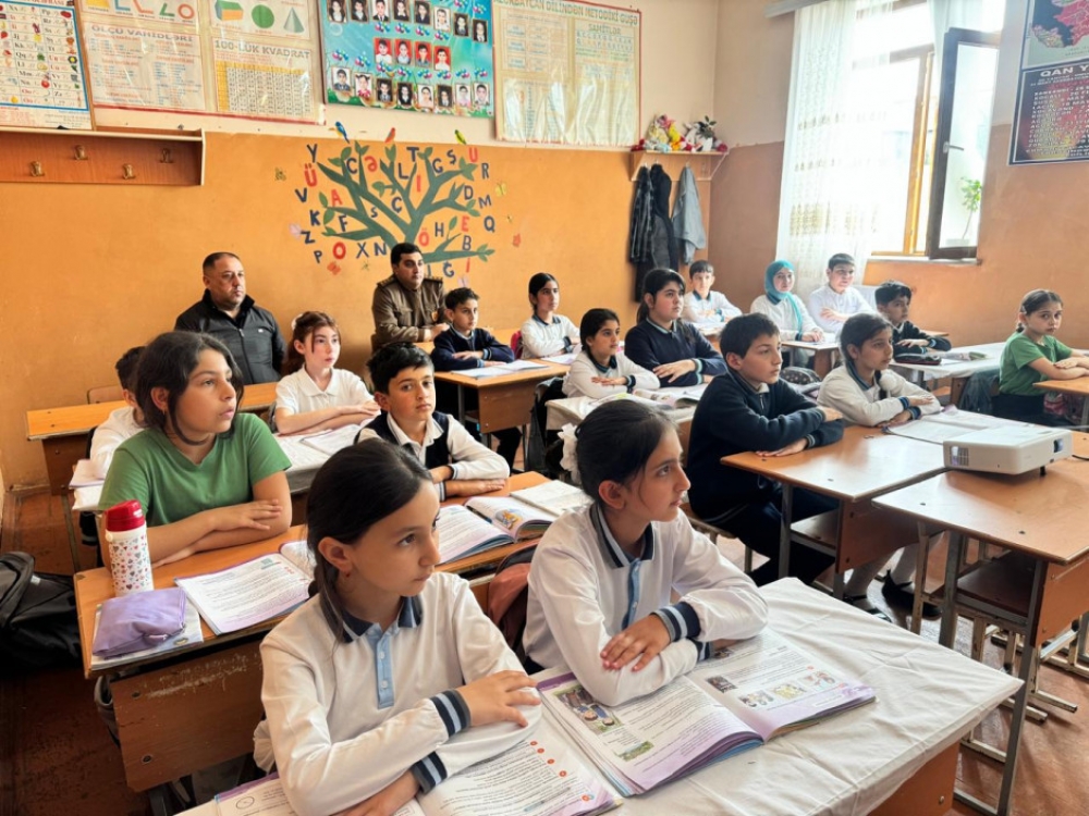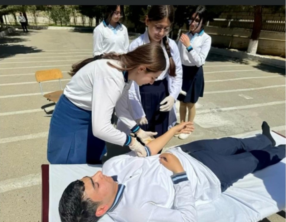 Məşqin nəzəri hissəsində məktəb kollektivinə mülki müdafiənin əsas prinsipləri, fovqəladə hallar və bununla bağlı davranış qaydaları barədə ətraflı məlumat verilib.