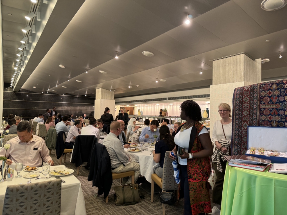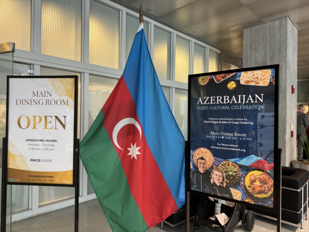 “İki sahil” xəbər verir ki, 22-23 may tarixlərində keçirilən tədbir çərçivəsində Dünya Bankının işçilərinə naharda Azərbaycan mətbəxinə məxsus təamlar təqdim olunub. Yeməklər azərbaycanlı aşpazlar tərəfindən hazırlanıb. Həmçinin girişdə mədəniyyət nümunələrimiz və Azərbaycan haqqında jurnallar nümayiş edilib.