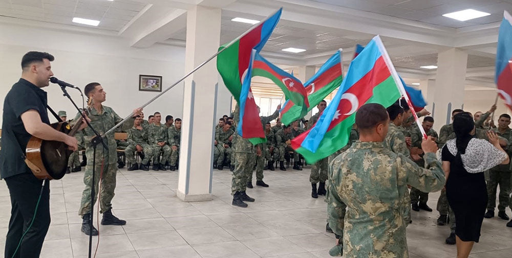 Hərbi qulluqçulara vətənpərvərlik mövzusunda konsert proqramı təqdim edilib.