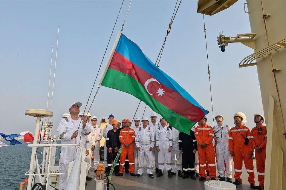 Çində Dövlət Himnimizin sədaları altında gəmidə Azərbaycanın üçrəngli Dövlət Bayrağı qaldırılıb və “Xocalı” istismara qəbul olunub.