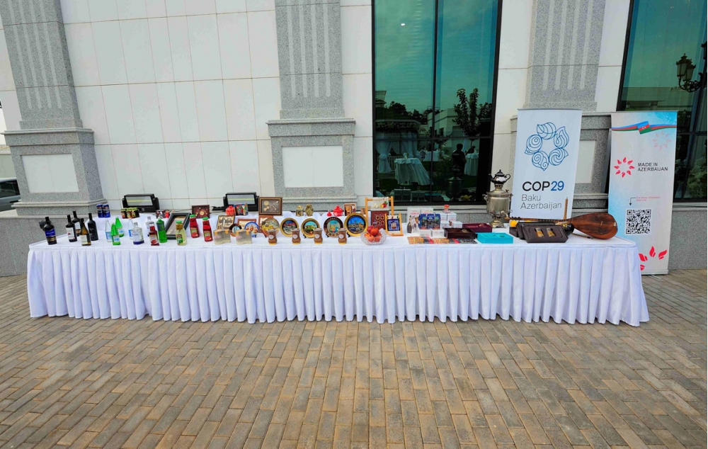Eyni zamanda tədbirdə ölkəmizin tarixi, mədəniyyəti, incəsənəti, xalça sənəti və turizm potensialı ilə bağlı materiallar, milli musiqi alətlərimiz, eləcə də “Made in Azerbaijan” brendinin məhsulları nümayiş etdirilib. Həmçinin, tədbirdə Azərbaycanın COP29.az və azerbaijan.travel saytları ilə bağlı bannerlər də sərgilənib.