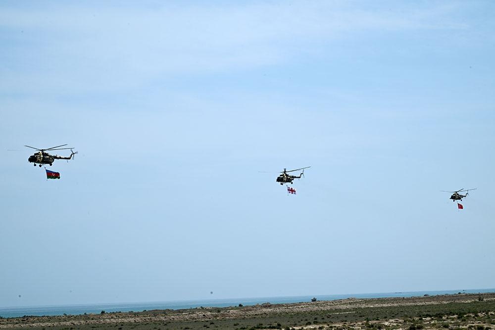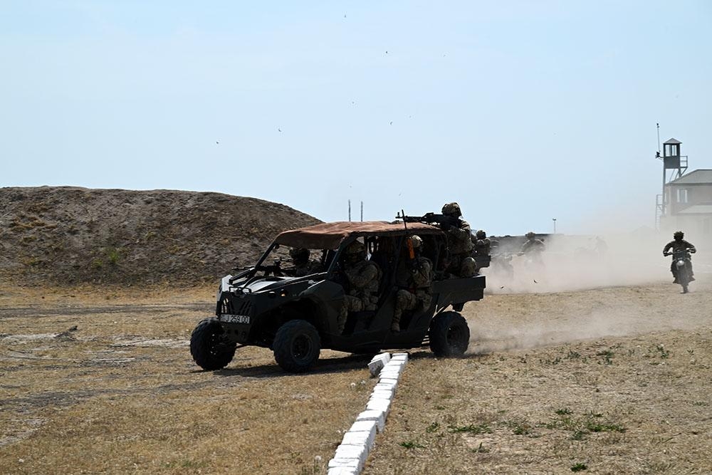 Yüksək səviyyəli qonaqlar Azərbaycan, Türkiyə və Gürcüstanın təlimdə iştirak edən xüsusi təyinatlılarının fəaliyyətlərini izləyiblər.