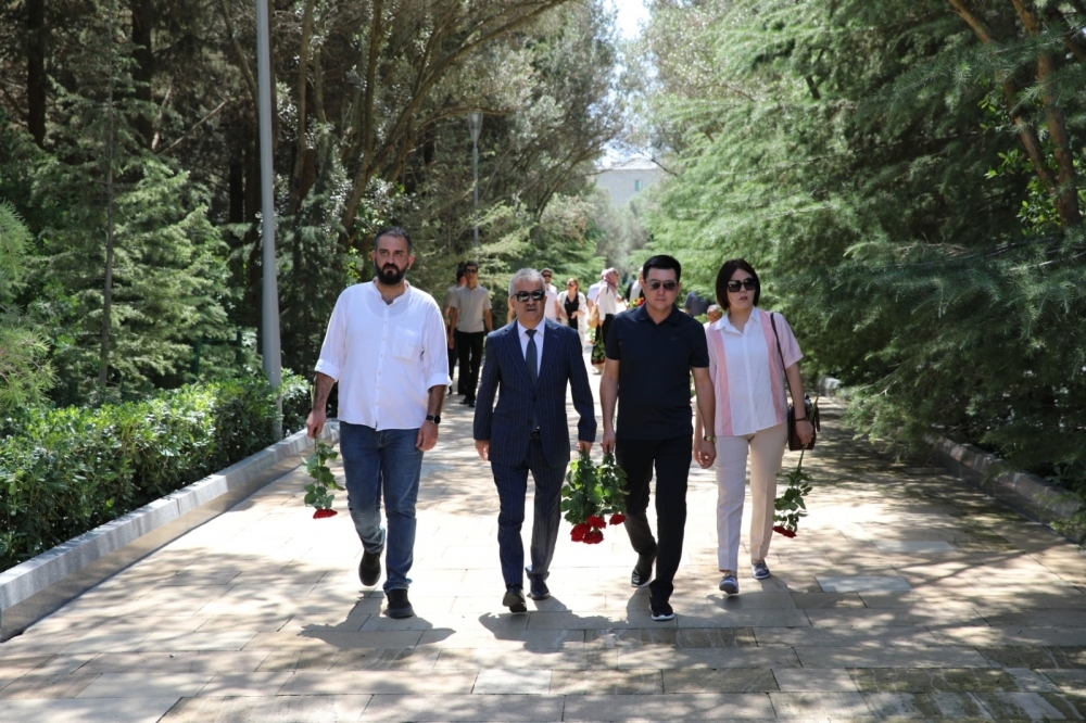 Teatrın direktoru Usmanatdin Mambetalievin başçılıq etdiyi teatr təmsilçiləri səfər proqramına iyunun 25-də Fəxri Xiyabanda xalqımızın ümummilli lideri Heydər Əliyevin məzarını və Şəhidlər Xiyabanını ziyarətlə başladılar.