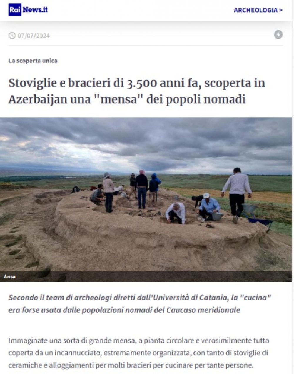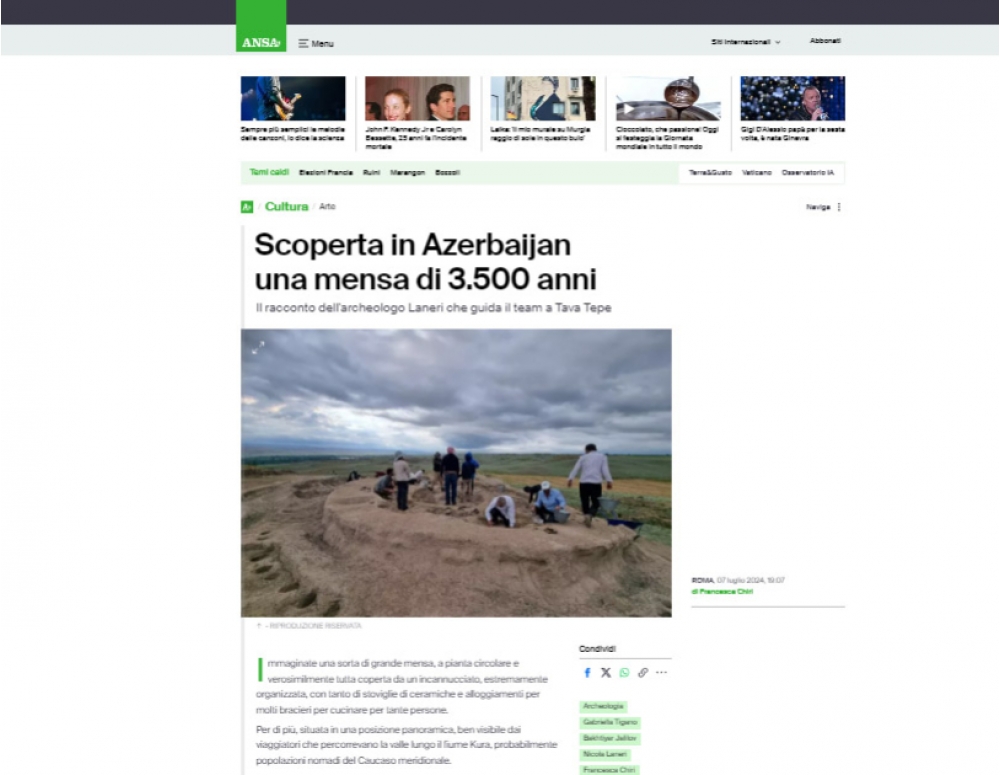 İtaliyanın “Ansa” və “Rai” informasiya agentlikləri Azərbaycanın Ağstafa rayonundakı “Tava təpə” abidəsində aşkarlanan 3500 il əvvələ aid Qafqazda ilk ritual ibadətgah yeri haqqında məqalə dərc edib.