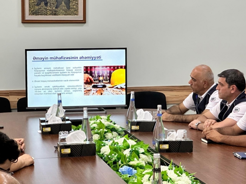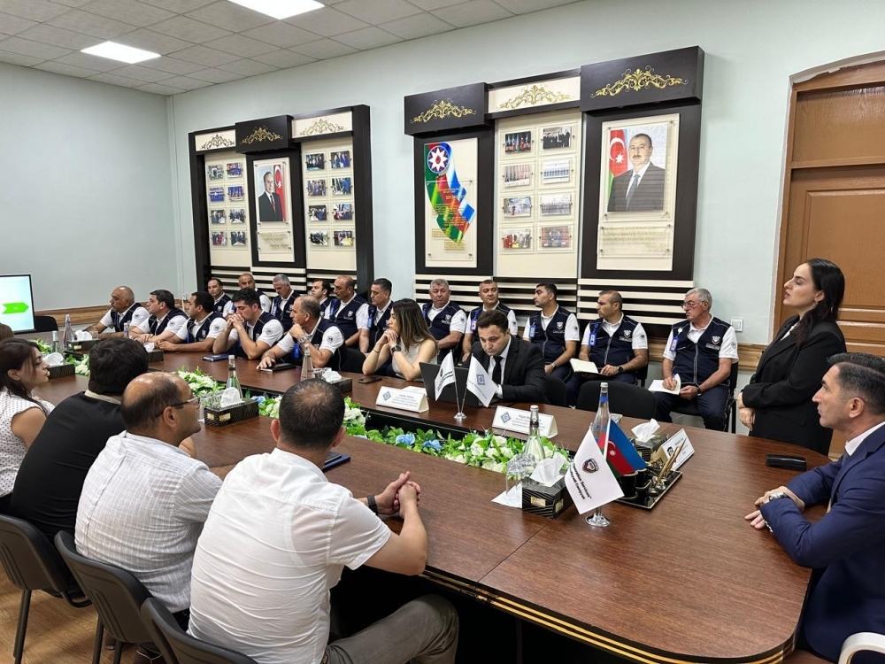 Peşəkar mühafizə xidməti “Security Operation Services” (“SOS”) MMC- nin dəvəti ilə Əmək və Əhalinin Sosial Müdafiəsi Nazirliyi yanında Dövlət Əmək Müfəttişliyi Xidməti tabeliyində fəaliyyət göstərən Əməyin Mühafizəsi Mərkəzi “İş yerlərində əməyin mühafizəsi” mövzusunda maarifləndirici tədbir keçirib.