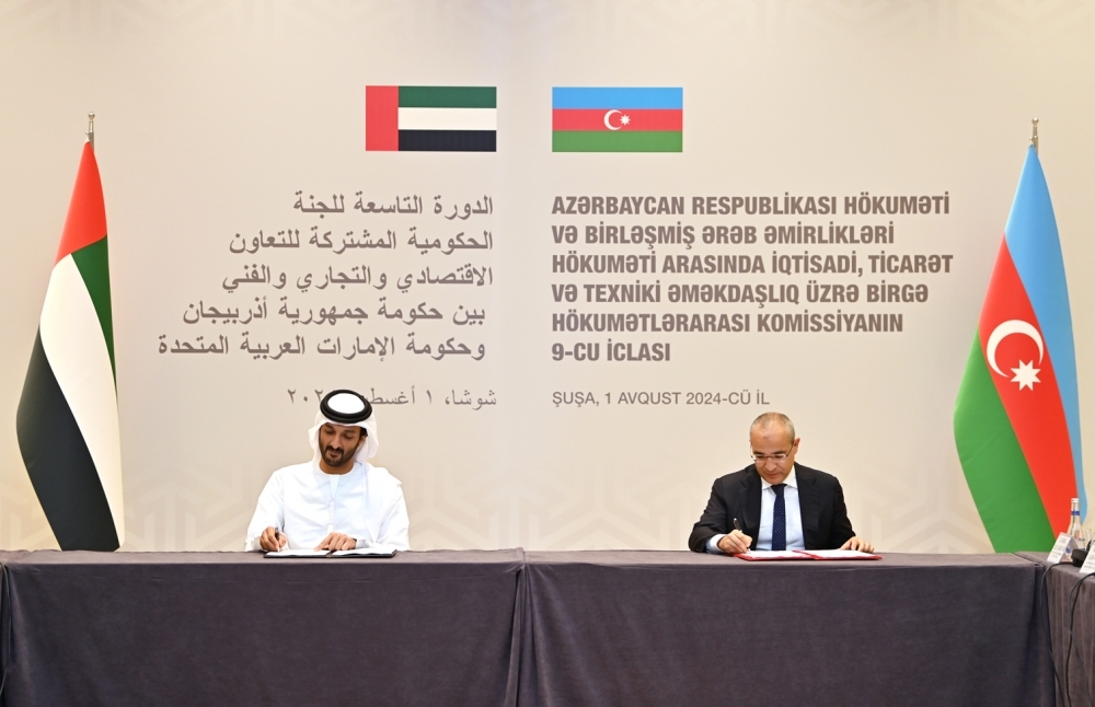 Şuşada Azərbaycan Respublikası Hökuməti və Birləşmiş Ərəb Əmirlikləri Hökuməti arasında iqtisadi, ticarət və texniki əməkdaşlıq üzrə Birgə Hökumətlərarası Komissiyanın 9-cu iclası keçirilib.